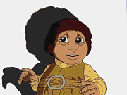 Here’s an example (or two) of an animation celluloid—the pride of my collection, so to speak. But first, let’s talk a little bit about history. The Hobbit animated film was released in 1977 by the studios Rankin/Bass and Topcraft. Rankin/Bass is rather famous for other works as well, such as The Last Unicorn and several Christmas holiday specials like Frosty the Snowman.